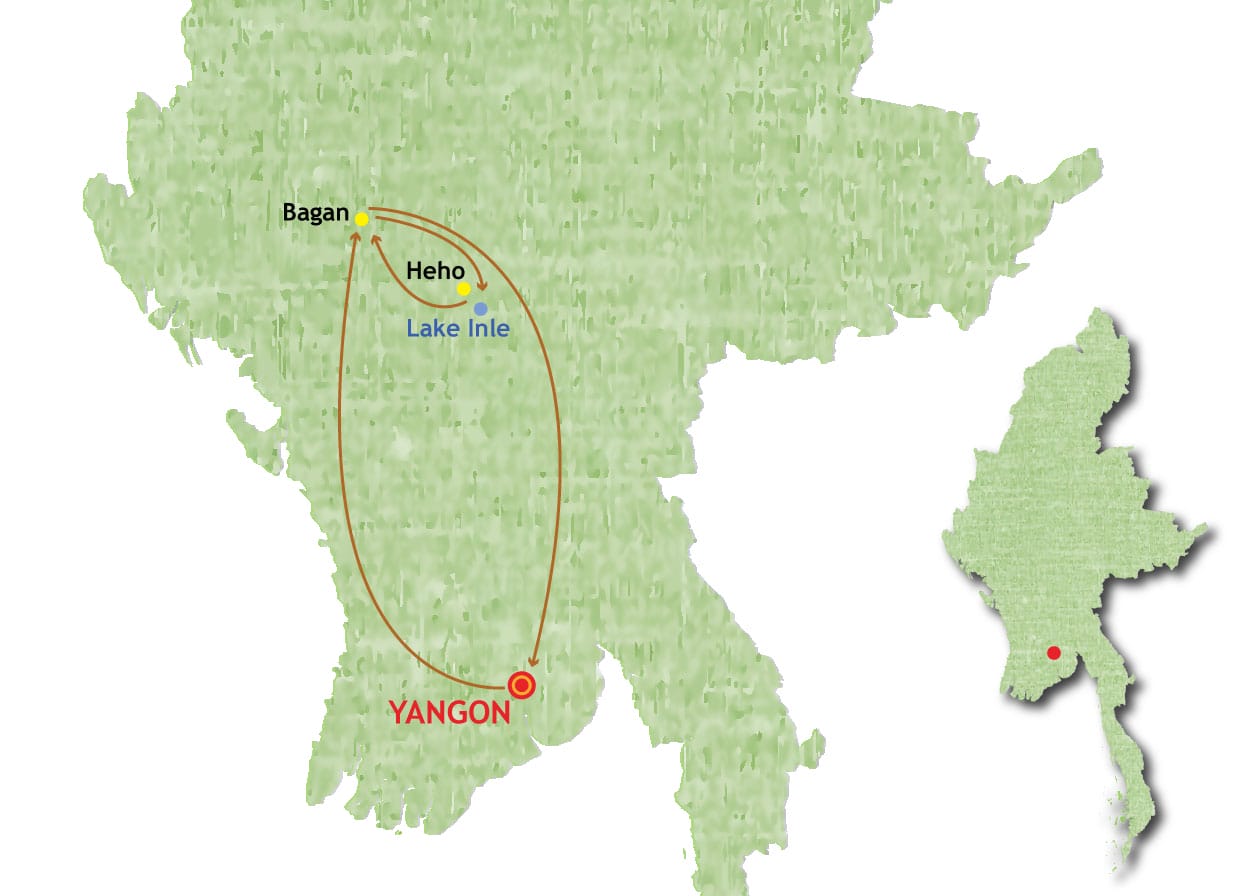 Enjoy your breakfast and then depart to the Heho airport for the flight back to Yangon. Upon arrival, be picked up and drive to hotel. On the way, visit Mahapasana cave (in case of open) where 6th Buddhist Synod kept. Later check-in hotel and visit Chauk htat Gyi Pagoda to see the reclining Buddha image and Shwedagon Pagoda – the world’s most stunning monuments. Enjoy sunset at the pagoda.