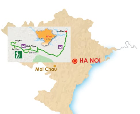 Day 1 : Hanoi - Duong Lam - Mia Pagoda - Hoa Binh (B.L.D) Day 2 : Hoa Binh - Xa Linh - Hang Kia (B.L.D) Day 3 : Hang Kia - Cun Pheo (B.L.D) Day 4 : Cun Pheo - Xam Khoe (B.L.D) Day 5 : Xam Khoe - Mai Chau (B.L.D) Day 6: Mai Chau - Hoa Binh - Hanoi (B.L) |
