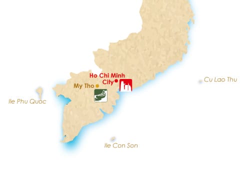Next, continue to the dock in My Tho where you take a boat trip on Mekong River to visit farmer’s house and garden. Enjoy the beautiful scenery with the fishing ports, floating stilt houses and craft workshops with some stops on islands including Dragon, Phoenix, Unicorn and Tortoise. You will take a horse and carriage ride around villages to explore the local life; taste tropical fruits and honey tea at bee-keeping farm; listen to traditional music and especially, visit a coconut candy workshop. Roam on village path with fruit orchards and bonsai garden. Meet the locals to get deeper understanding about their daily life in the watery area.
