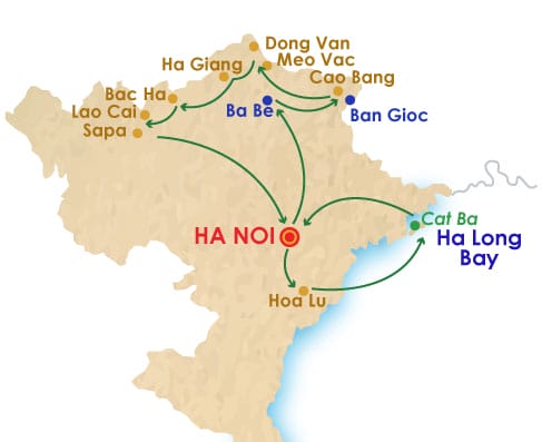 Cat Ba Island - Cao Bang - Ha Giang - Hanoi - Ha Long Bay - Ba Be Lake - Bac Ha - Dong Van Ha Giang - Meo Vac - Hoa Lu - Sapa - Ban Gioc Waterfall - Lan Ha Bay