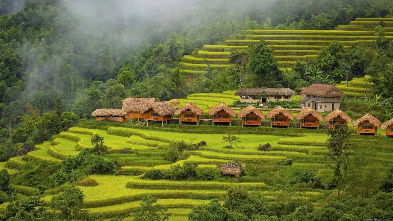 Breakfast at Hoang Su Phi Lodge or at Nam Hong Homestay. To start your day, follow your trails, head towards Khoa Thuong Village, and admire the beautiful surroundings. The landscape is a vibrant green with rice and tea fields.
