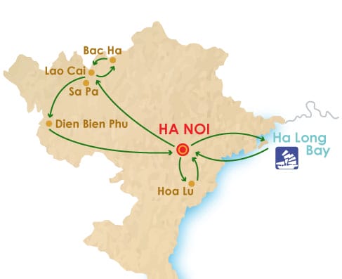 Day 01: Hanoi arrival – Discovery Capital (L) Day 02 : Hanoi – Hoa Lu “Ha Long Bay on land ‘- Lao Cai (B.L.D) Day 03 : Lao Cai – Bac Ha typical market – Sapa (B.L.D) Day 04 : Sapa – Tam Duong – Binh Lu – Sin Ho (B.L.D) Day 05: Trekking (B.L.D) Day 06: Trekking (B.L.D) Day 07: Trekking (B.L.D) Day 08: Trekking (B.L.D) Day 09: Trekking – Boat trips – Muong Lay (B.L.D) Day 10: Muong Lay – Dien Bien Phu – Hanoi (B.L) Day 11: Hanoi – Halong – Overnight on boat (B.L.D) Day 12: Ha Long – Hanoi – Departure (B.L) |