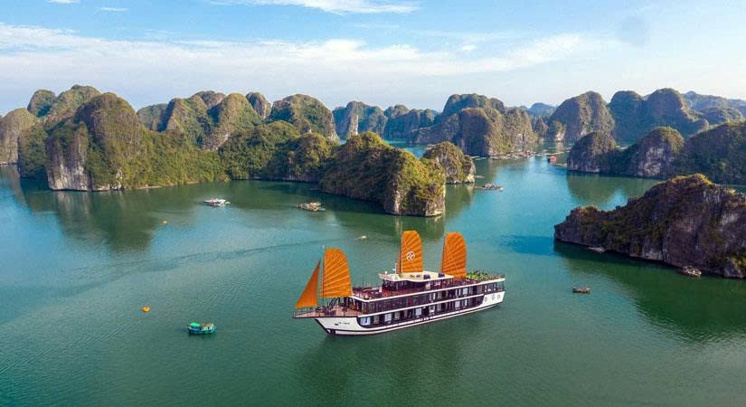 7:00: Breakfast and the cruise starts through fabulous scenery: Tampour cave, Virginity cave, Me Cung cave and Flag Island.
