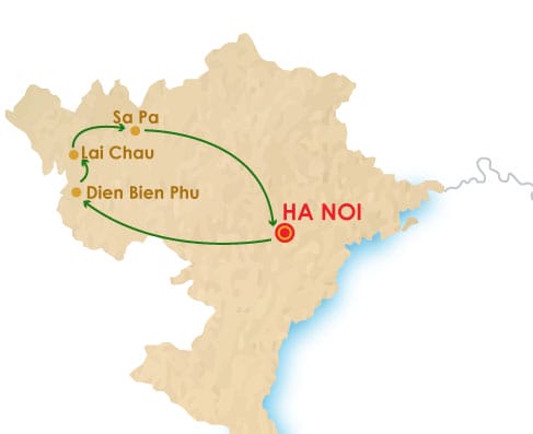 Day 1: Hanoi - Dien Bien Phu (D) Day 2: Dien Bien Phu - Muong Lay (B.L.D) Day 3: Muong Lay - Trekking - Lai Chau (B.L.D) Day 4: Lai Chau Trekking Day 5: Lai Chau Trekking Day 6: Lai Chau Trekking Day 7: Lai Chau Trekking Day 8: Lai Chau - Than Uyen - Sapa Day 9: Sapa Trekking Day 10: Sapa Trekking Day 11: Muong Hum Market - Hanoi Day 12: Hanoi - End |